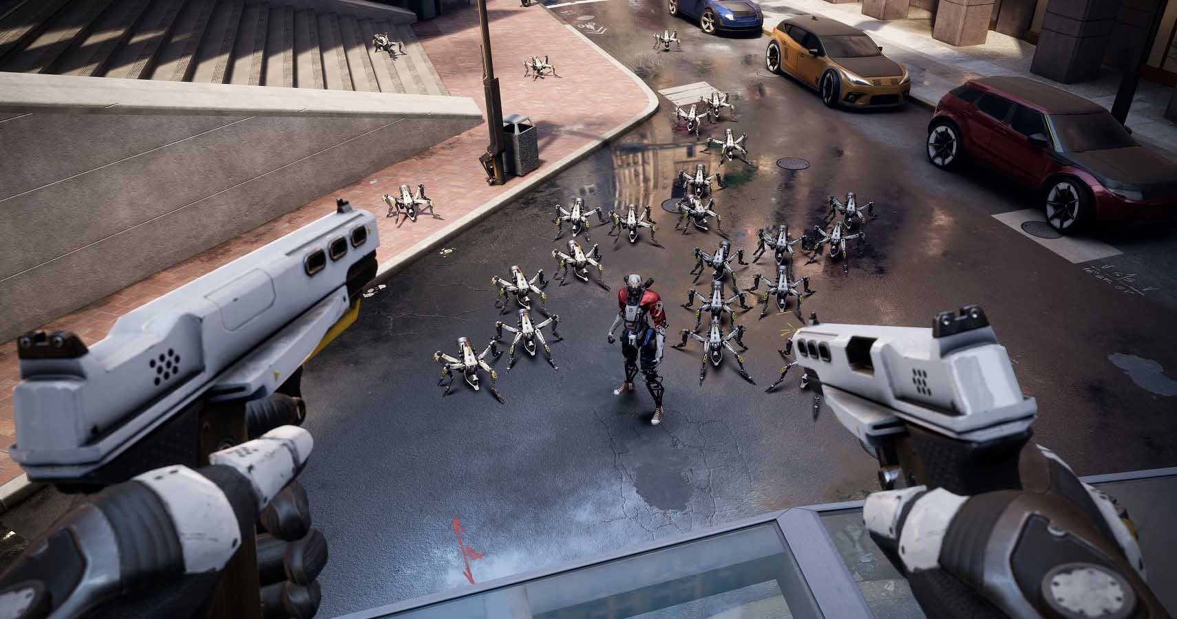 The gameplay has a very arcade feel to it and is one of the amend games made for the Rift and Quest. The game is incredibly immersive and fast-paced; with nice touches like beingness able to quick draw the pistols holstered on the grapheme's hips.
